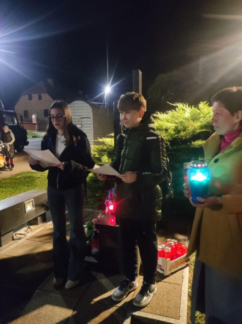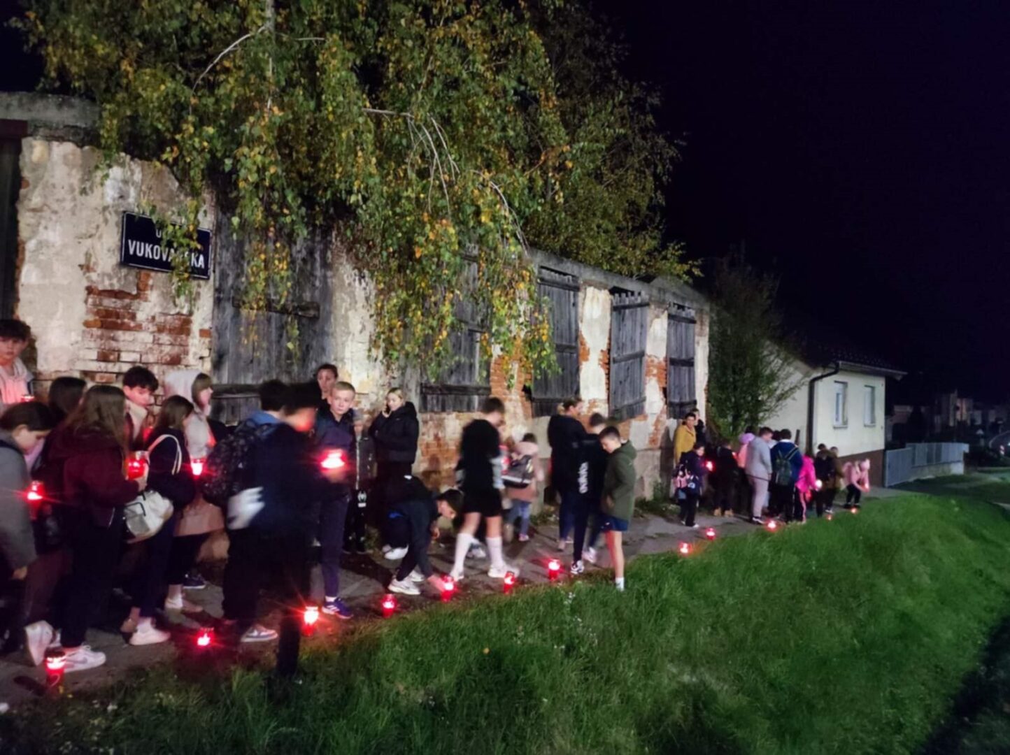 Nakon predavanja, učenici i učitelji zaputili su se prema centru općine Nova Bukovica. Ispred spomenika poginulim braniteljima s područja općine Nova Bukovica govore su održali ravnateljica Lareta Žubrinić i načelnik općine Tomislav Bračun, a zatim su učenici Dunja Sobol i Tomislav Škrnički pročitali pjesme koje su napisali u čast gradu Vukovaru. Na kraju programa, svi su učenici zapalili svijeće duž Zagrebačke ulice i time odali počast svim žrtvama Domovinskog rata i žrtvi Vukovara i Škabrnje.