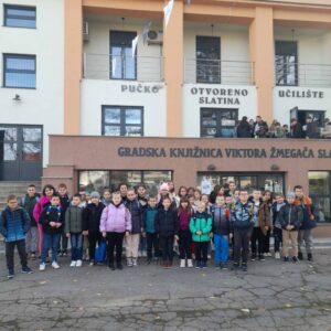 Učenici razredne nastave naše škole, u pratnji svojih učiteljica, danas su  (20. 11.2025.) bili u Slatini. Prema predviđenom planu , najprije su bili u Gradskom kinu. Gledati su film Drugi dnevnik Pauline P.. Film je temeljen na istoimenim romanu autorice Sanje Polak, a nastavlja pratiti zgode i nezgode popularne dječje junakinje Pauline P. Inače, roman je obavezan dio školske lektire za treći razred osnovne škole.