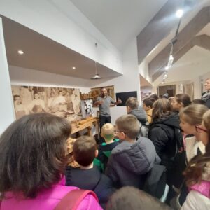 Potom su posjetili Zavičajni muzej u kojem ih je dočekao kustos Srđan Đuričić. Upoznao ih je sa stalnim postavom muzeja, a akcent je bio na prošlosti i eksponatima iz našeg sela. Saznali smo da postojimo, kao naselje, već skoro 700 godina i da je jedno veliko nalazište iz daleke prošlosti baš u našem selu (dio Nove Bukovice pod nazivom Sjenjak). A svakako smo iskoristili priliku i slikali se pored prekrasne sobe koja je bila u vlasništvu jedne bukovačke obitelji.