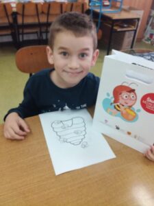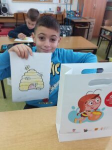 Učenici su bili sretni jer su dobili svoje vrećice. Knjiga o pčelici Jelici i medi Edi je odmah privukla njihovu pažnju pa su odlučili napraviti , ukrasiti i nacrtati svoje pčelice.